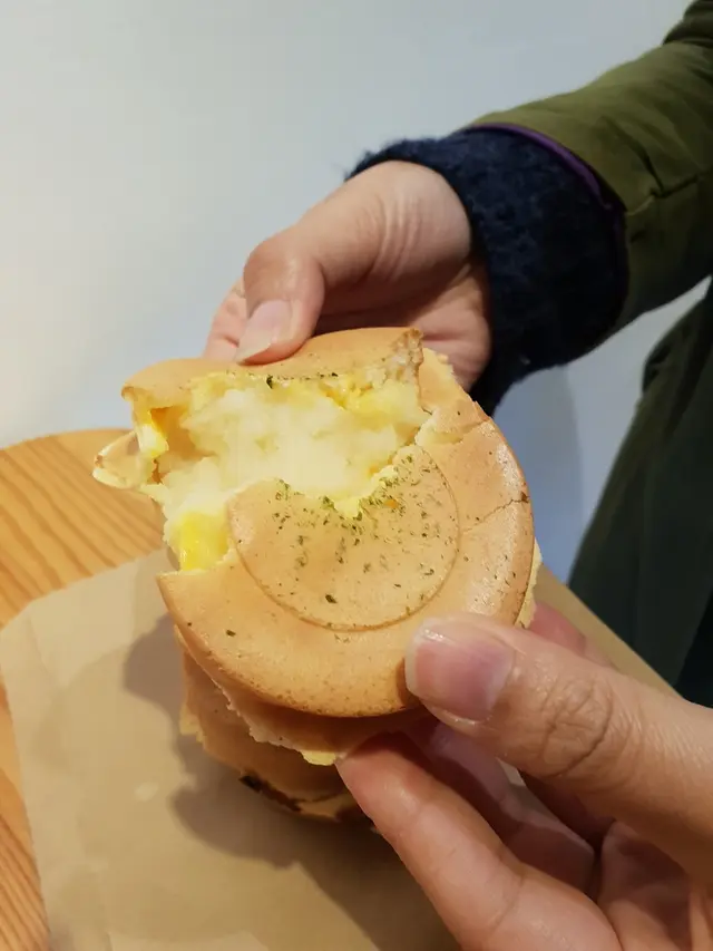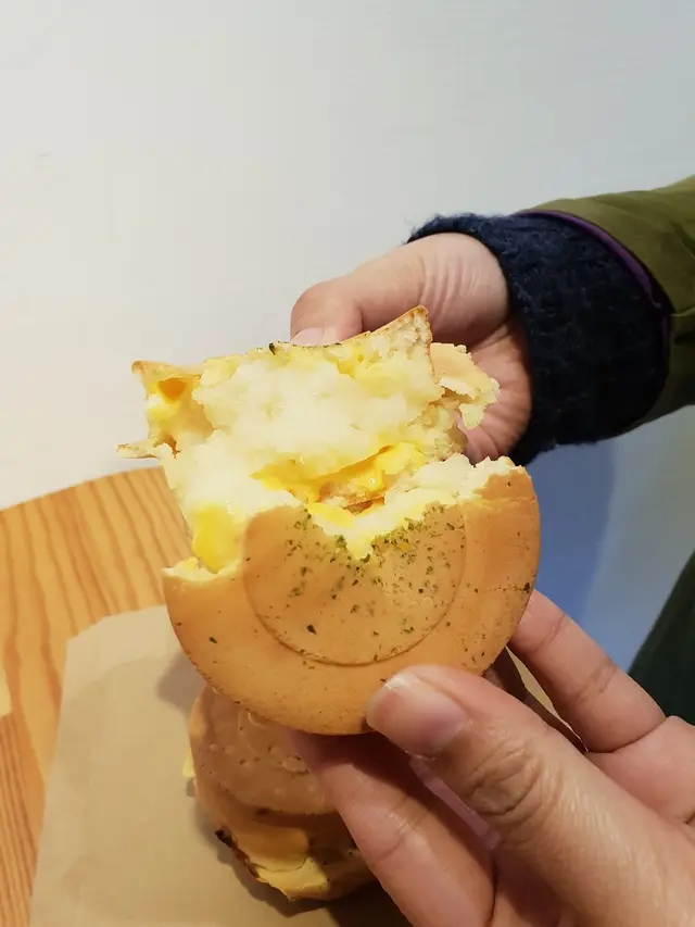 內餡很澎派,是原味馬鈴薯很綿很細,加上濃香的起司,不會奶到很噁心恰到好處,很清爽又不會很膩。