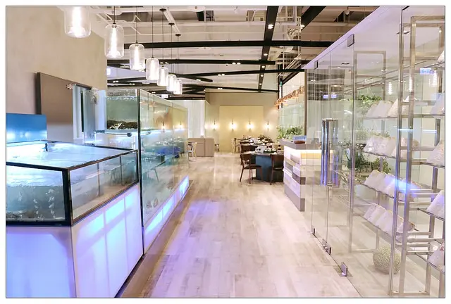 會看到許許多多的新鮮海鮮在水族箱XD裡游來游去