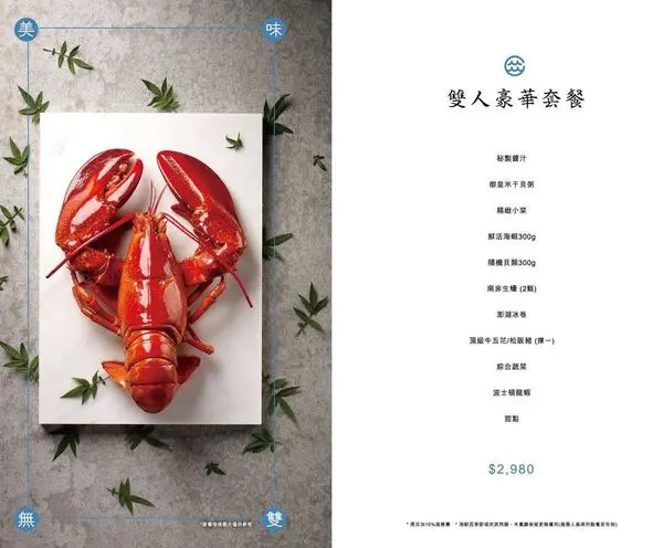 我們這次吃的就是雙人豪華套餐NT2980+10%