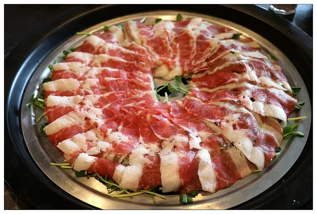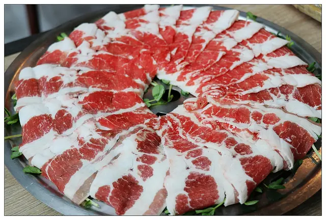 牛五花的部分使用薄切處理~油脂比例不算太高