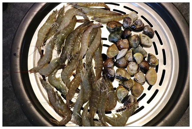 原本還想說這滿滿一盤的蝦子和貝類哪吃的完阿!!
