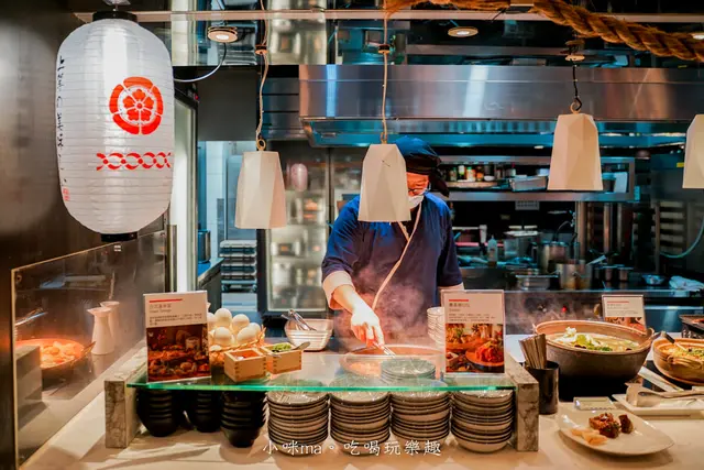 蒸煮區也是這次新菜色的重點,滿滿的蒸煮松葉蟹腳就在這一區,一旁還有暖呼呼的關東煮,光看這些熱騰騰的湯品鍋物就讓人心好暖,一旁還有現煮的鮑魚雞白湯拉麵也是不容錯過