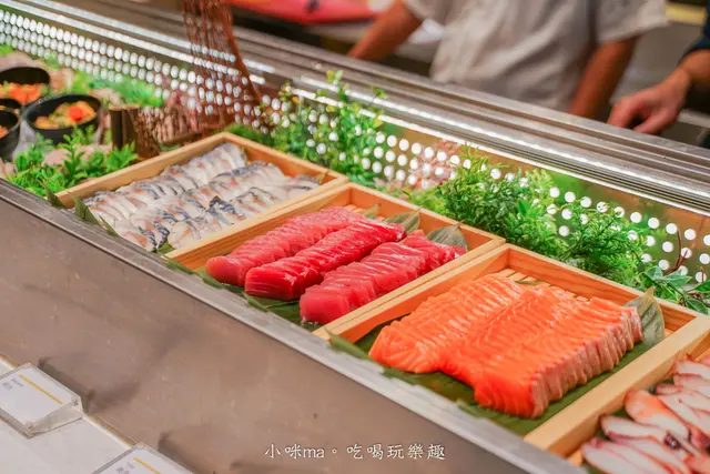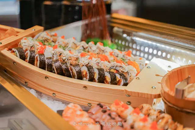日式料理區擺滿現切生魚片,各式鮮美的壽司船跟生魚片丼飯也是探索廚房裡熱門的一區