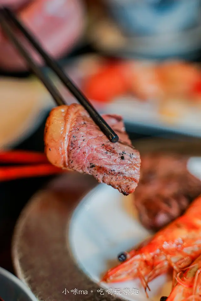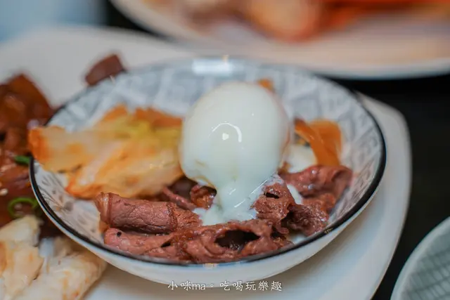 壺漬牛很有咬勁,因為前置作業有搭配醬料下去醃製,炭烤到表皮帶著微微焦脆越嚼越香