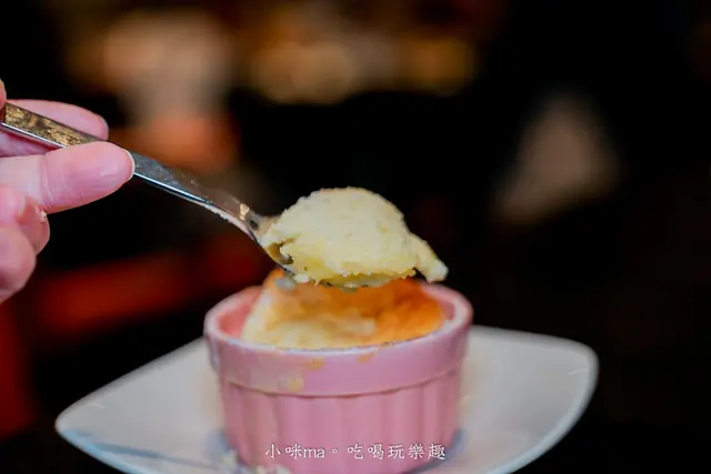 探索廚房隱藏版的甜點-舒芙蕾也是不容錯過,會有服務人員上桌詢問需不需要舒芙蕾,精緻的舒芙蕾吃起來濕潤又帶有濃郁蛋奶香,由他結尾最幸福了