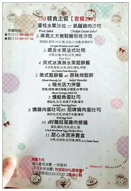 11種的輕食套餐通通是NT250~加套餐也只要NT299