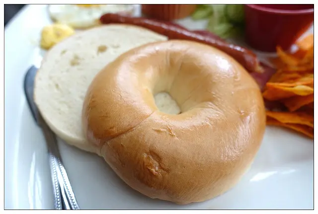 貝果可以搭配一旁的大蒜抹醬~吃起來很有嚼勁又帶著香氣~還蠻好吃的呢!!