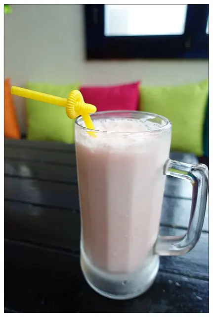 小菲點的是草莓牛奶~~口感會有一些小碎冰喝起來很消暑