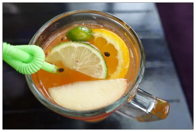 裡面放了新鮮的水果切片~酸甜適中~也還不錯喝喔!