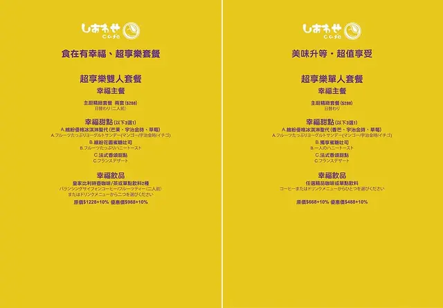 另可加價點選超值優惠加值-幸福飲品或幸福甜點,詳細請查看菜單或請現場人員介紹