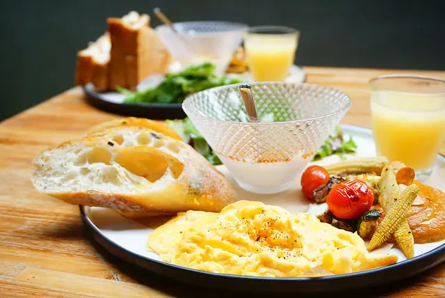 手工麵包、蔬菜、炒蛋、優格、油醋沙拉、果汁和附餐飲料