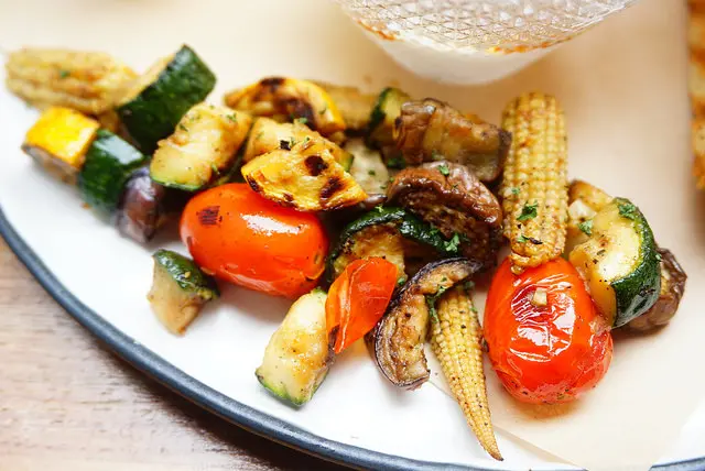 內容包含了櫛瓜、甜椒、茄子、玉米筍和番茄