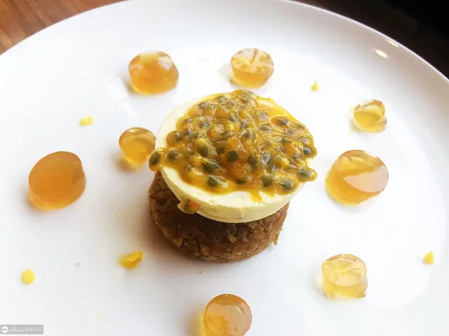 半圓球體是百香果慕斯,