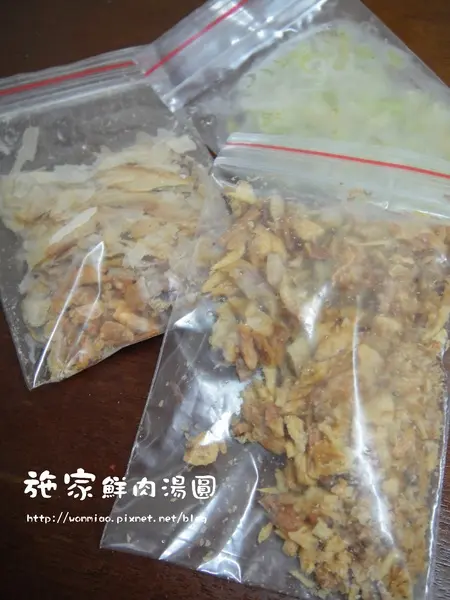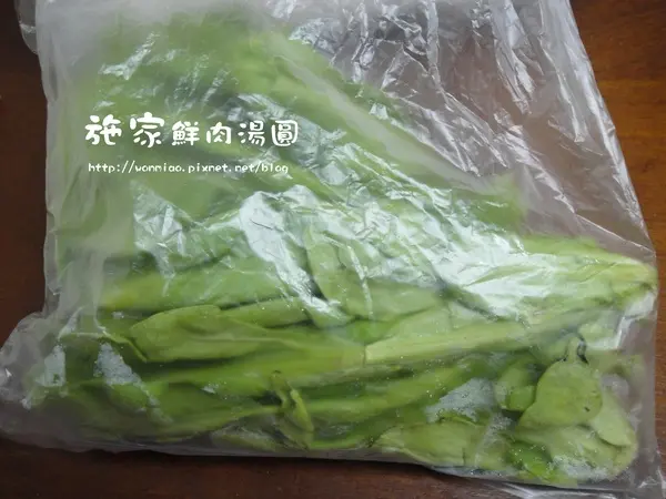 店家很有生意頭腦, 知道現代人生活忙碌, 貪圖便利, 這鮮肉湯圓不僅調味料都幫你準備好了, 連鹹湯圓不可少的茼蒿菜都附了, 真的是太大心了啦~~