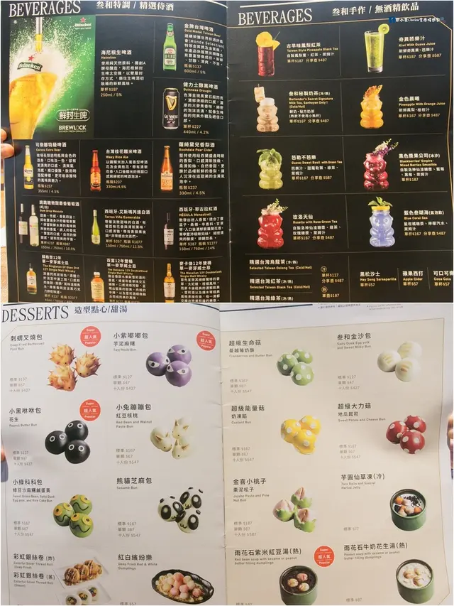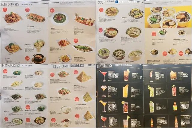 餐點主推台式料理特製調酒啤酒無酒精飲品,以及造型點心甜湯