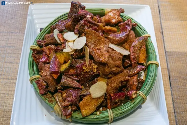 搭配辣椒、南瓜片等配料,以麻辣方式呈現,