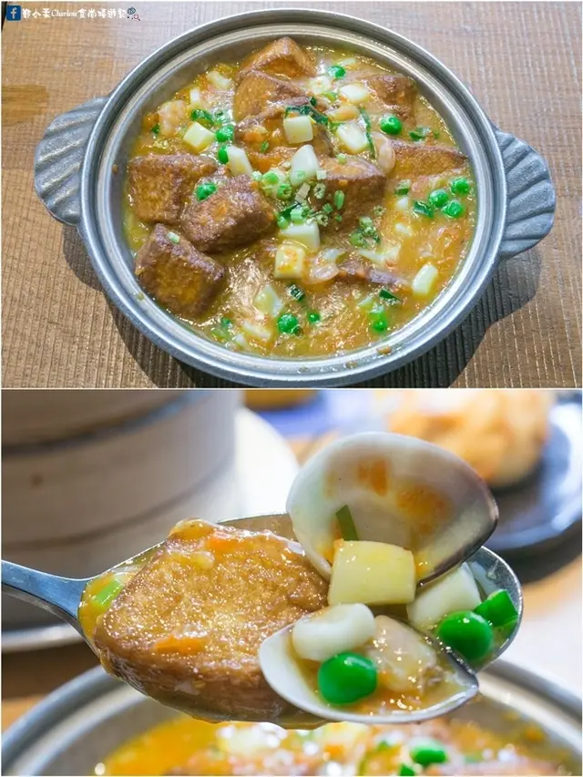 外皮金黃香酥的雞蛋豆腐,搭配什錦海鮮: