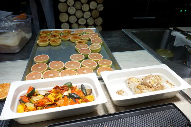 酸甜的葡萄柚+焦糖很不錯吃 還有一些現煮料理區,