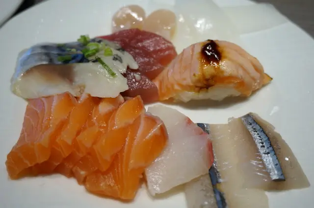 基本上就是常見的魚類都有,還有花壽司、握壽司,每一個區塊都標示得很清楚,下面是開胃小點區,