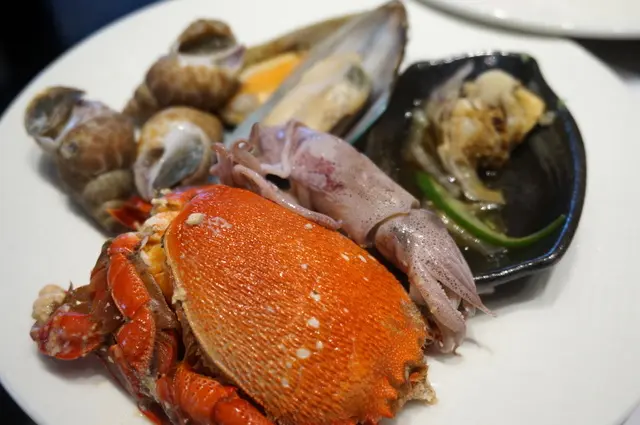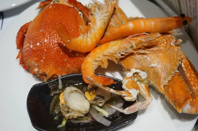 雖然沒有什麼高檔的海鮮,但是擺得很滿看了賞心悅目,