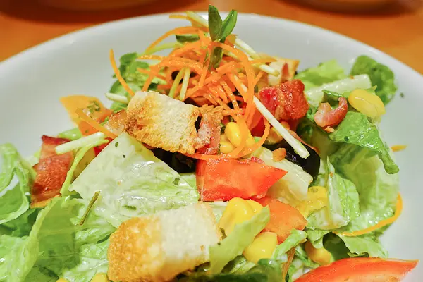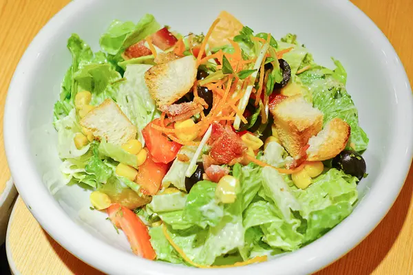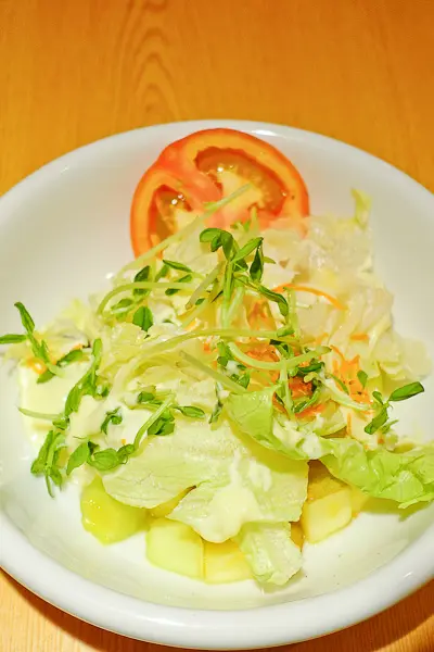 份量充足,口味中規中距,水果沙拉的醬汁少了點,
