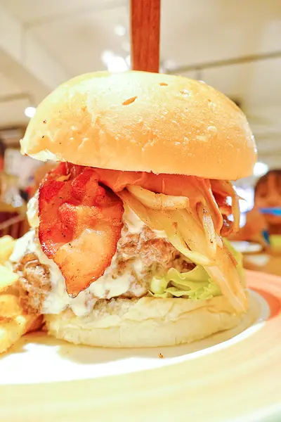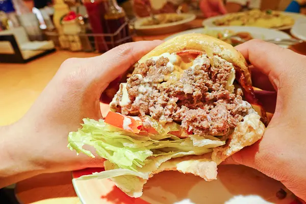 抓著漢堡大口咬下,滿口的肉香醬濃,除了好吃還是好吃。