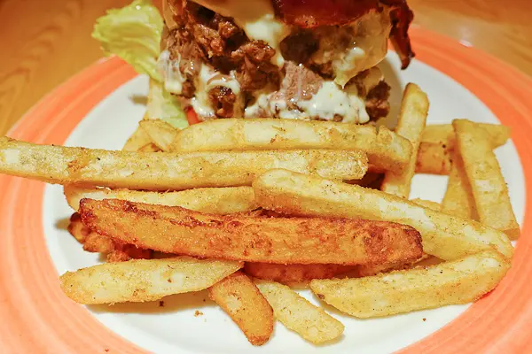 附餐是薯條,外酥內軟,是我喜歡的粗厚薯條。