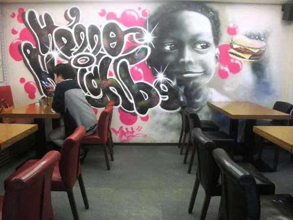 這搶眼的美式塗鴨牆面,每次來都讓我都看好幾眼,這一區的位置也比較寬敞,特別和店家指定要坐這一區呀(笑)!繽紛的牆面讓人看了心情也好了起來,也開始期待等等要上桌的餐點。非常喜歡美式餐廳的氣氛,讓人感到放鬆,可以大口咬漢堡,大聲聊天呀!