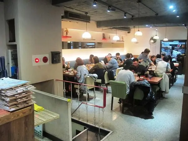 除了靠窗的沙發區,另外還有寬敞的塗鴉牆座位區,再來就是裡頭的座位,比較密集,有兩人桌和四人桌型,多人可併桌,約可容納40多人。話說裡頭還有一個可以容納八人左右的桌型,有點像半開放的小包廂,趕快姊妹五六個人湊一團一起來吃(笑)。