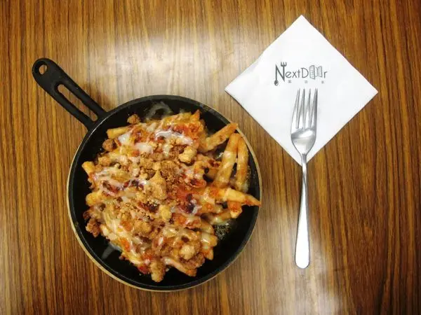 首先第一道就是看菜單時,一眼就決定要點的鄰居家新菜色:煉乳焗烤薯條!!聽起來是不是超誘人,用想像的就覺得好好吃!話說這道這可是永康店限定的餐點,只有永康店吃的到喔,大家可不要錯過了!每次看菜單時看到"限定"兩個字,就很容易點下去呀(攤手)。