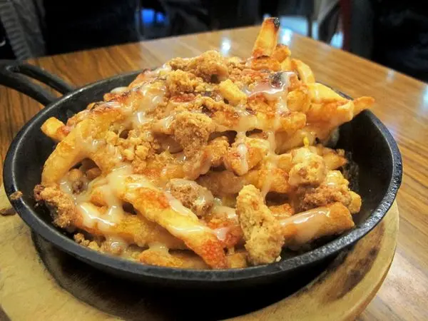 煉乳焗烤薯條一上桌時,整個鐵鍋超燙的,要小心喔!拿起叉子準備開吃啦,管他什麼熱量減肥先拋在腦後吧!份量十足的煉乳焗烤薯條,吃起來鹹鹹甜甜的感覺,香氣很足! 由於有烤過,所以薯條吃起來不是和一般薯條一樣脆脆的,而是偏硬一些的口感,帶有嚼勁,裡頭還有加上花生粉調味,起士、煉乳和花生粉三者結合起來的口感層次很豐富,整個超好吃。話說這煉乳焗烤薯條只是前菜而已,份量就好多,建議三四個人一起分食比較適合喔。