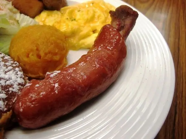 帶骨臘腸其實在早午餐裡比較少見,咬起來多汁且十分有嚼勁,很好吃喔!