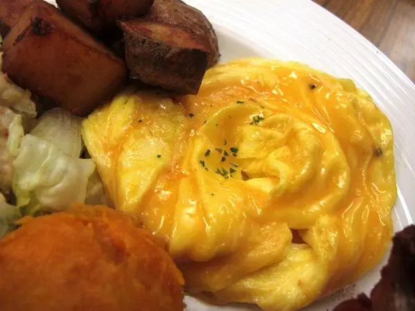 炒蛋鬆軟滑嫩,灑點鹽巴調味更好吃喔。