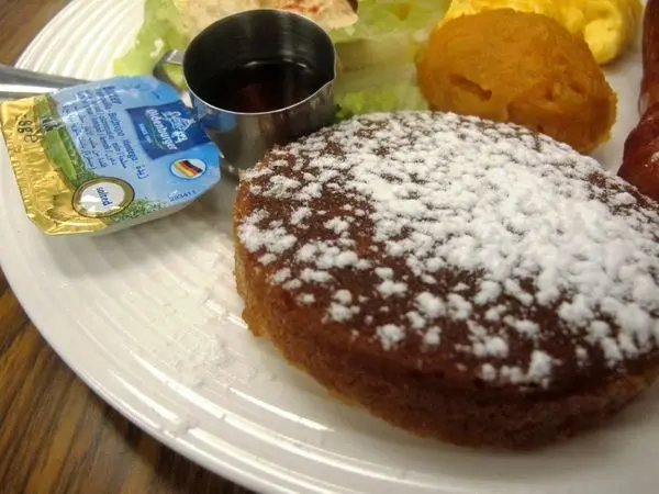 再來就是我最愛的厚鬆餅,果然沒有讓我失望,鄰居家的厚鬆餅是採用「杜蘭小麥」製成,杜蘭小麥有較高的蛋白質和礦物質,做出來的鬆餅充滿獨特香氣,口感也很鬆軟且自然,很美味!厚鬆餅另外還有附上無鹽奶油和楓糖漿,兩種搭配起來都很好吃喔,都試試看吧!