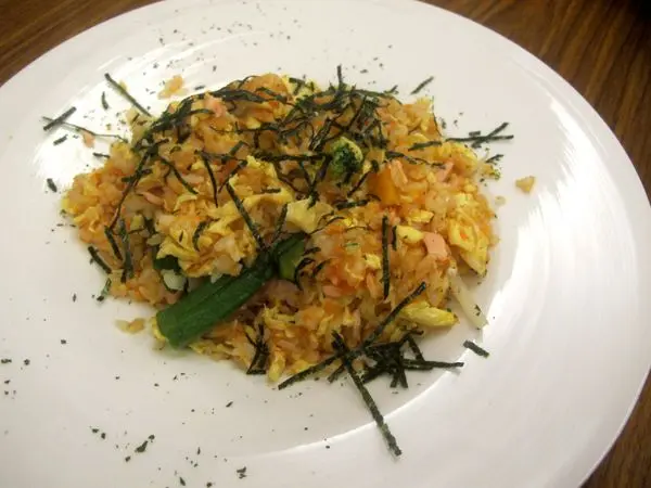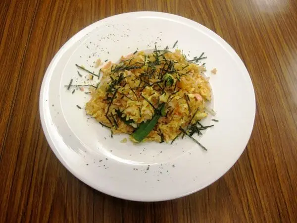 飯裡還有鮭魚卵,而且分量很足,每一口炒飯吃起來都有逼波逼波的口感,很好吃耶。
