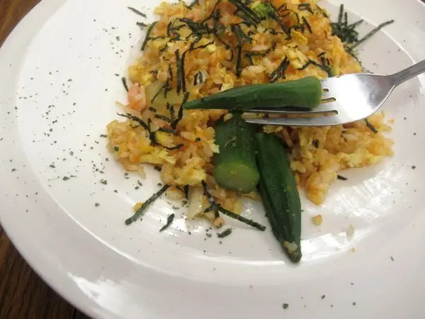 加入洋蔥和秋葵口感更增清新,尤其是秋葵吃起來有點脆口,又帶有滑嫩感,搭配蛋炒飯其實很適宜耶。