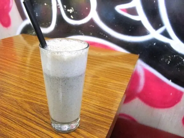 再來是懷特點的黑芝麻香蕉豆漿,豆漿系列飲品也是新菜色。原本以為會很濃稠的,沒想到喝起來意外清爽,淡淡的黑芝麻香氣中夾雜了香蕉氣味,入口則是豆漿的滑順感,比我預期的好喝很多耶。