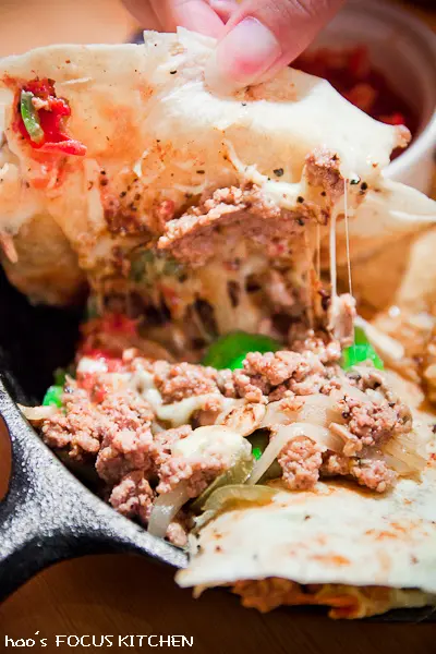 內餡是碎切的牛肉,肉質滑嫩香軟,跟洋蔥、辣青椒等拌炒,