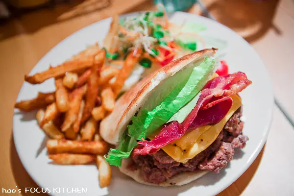 牛肉培根漢堡(換口袋餅加大),290元,