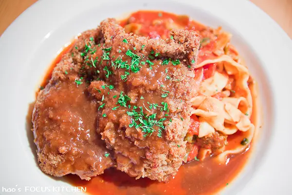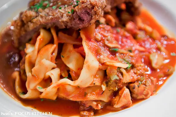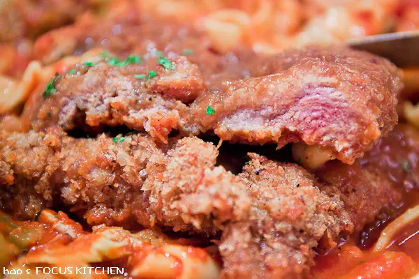 炸過的牛排太乾,而麵條醬汁不夠多,讓我對牛排用油炸的方式非常沒信心。
