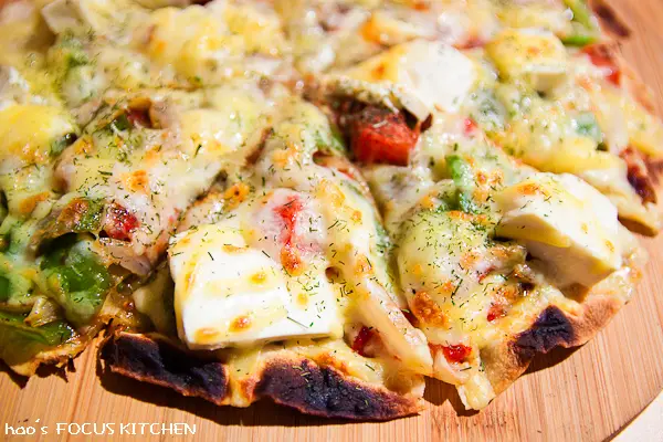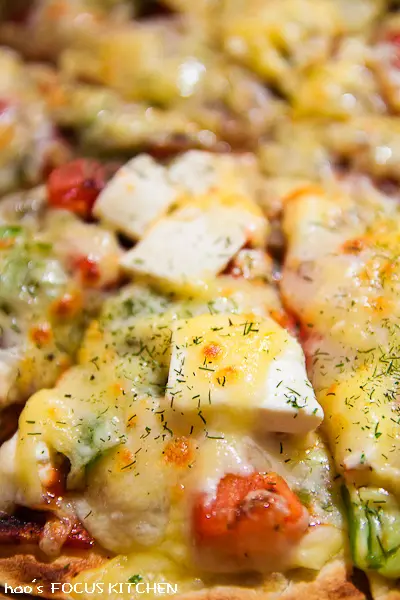滿滿的起司融化在餡料上,灑上時蘿香草碎屑後香氣撲鼻。