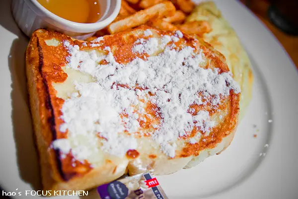 而法國吐司用厚片吐司沾滿蛋汁下鍋煎成金黃色,灑上厚厚的白色糖粉,