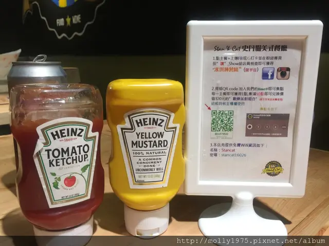 每桌都提供芥末醬,番茄醬及餐具,擦手紙及漢堡袋