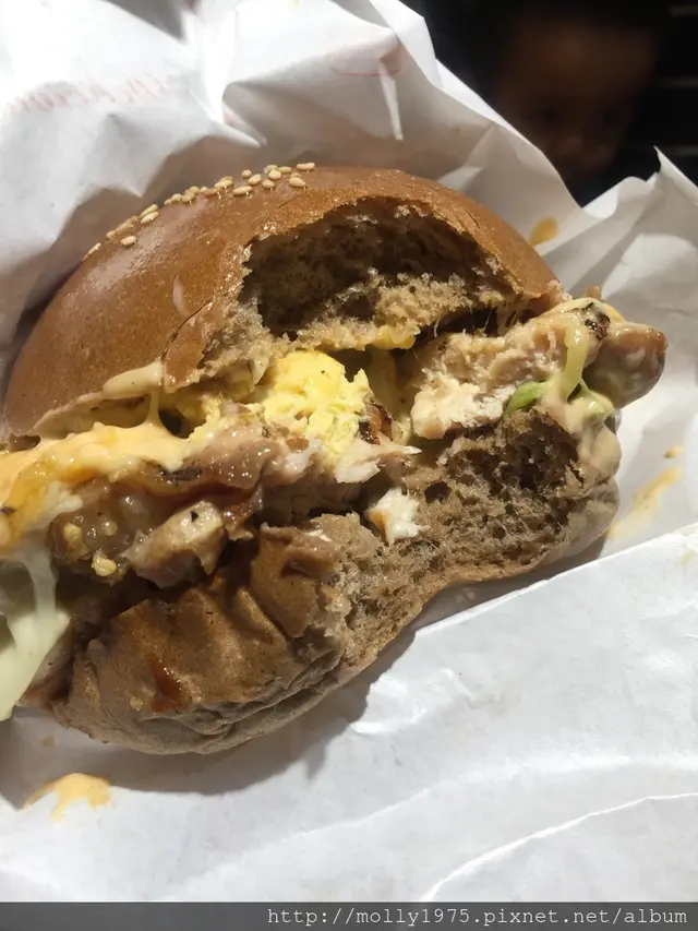 這漢堡內容物也太層層堆疊囉,疊的很高,嘴巴無法一口咬阿....嘴會痠