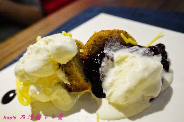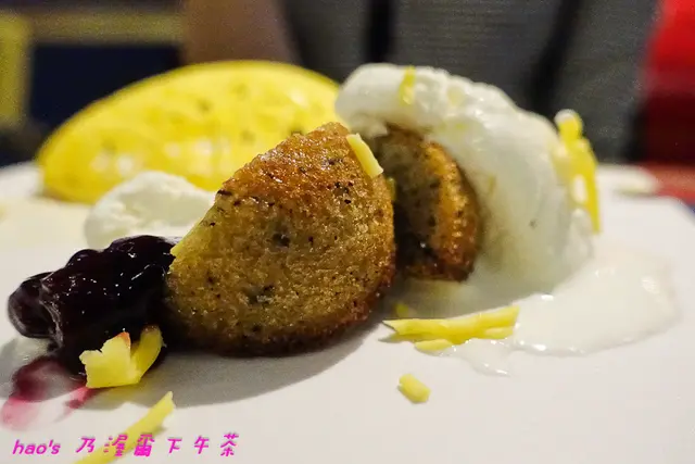 因為裡頭是冰淇淋搭配伯爵茶磅蛋糕,再淋上藍莓醬。