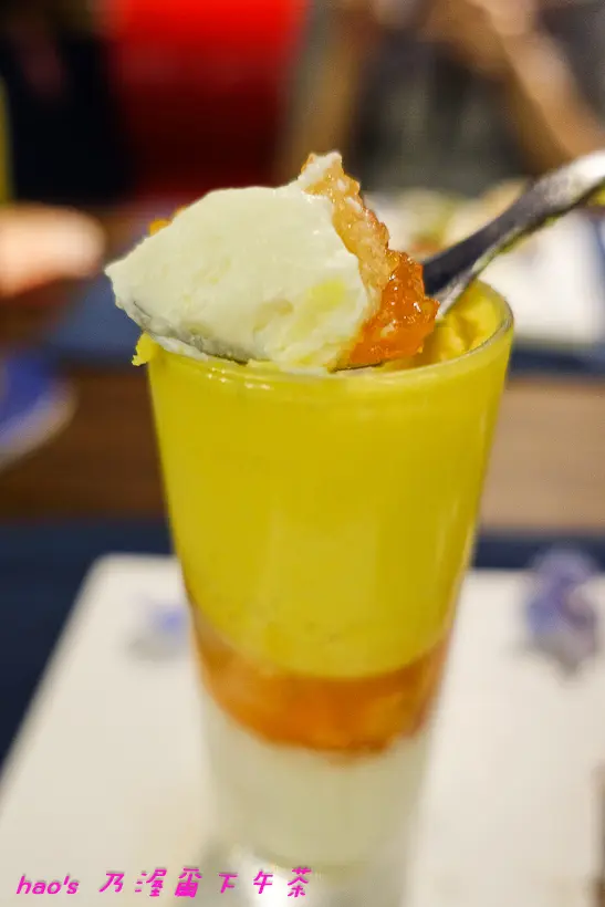 很搶眼的一道甜點,以細長的玻璃杯盛裝,
