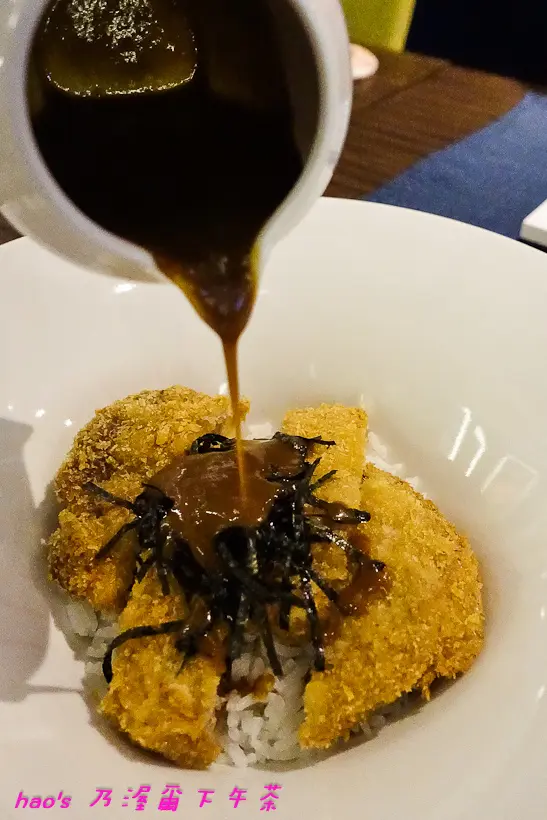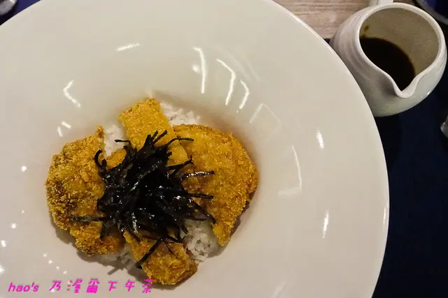 這道餐點很簡單,以廣口的大深盤裝著金黃豬排,