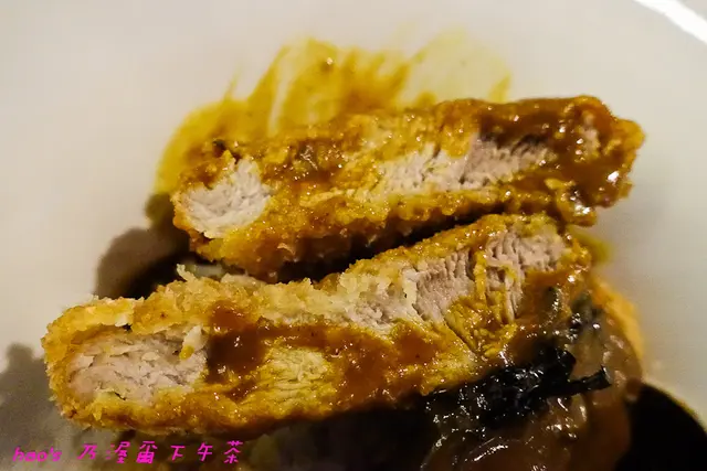 豬排比預期的更厚實,外層炸至金黃香酥而不油膩,