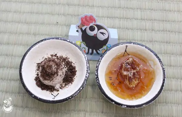 這是我的抹茶控好友點的,果真毫不意外的點了口味,這款我之前在嚐過了(甩髮)她點的鹽漬櫻花凍,外觀看起來就是藏有櫻花的透明果凍透,甚美!