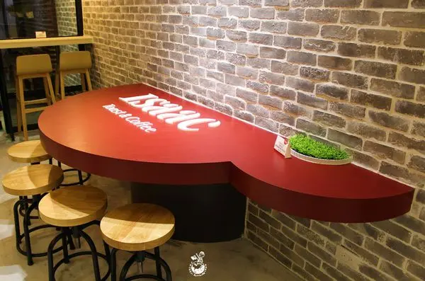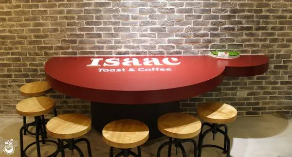 ▲店內還特別訂製了Isaac Toast&Coffee咖啡造型桌